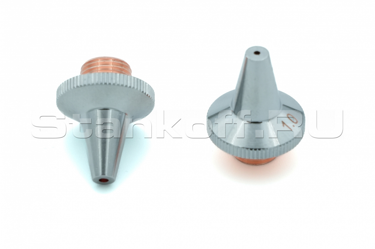 Используется в качестве электрода для корректной работы датчика слежения за поверхностью, а также для подачи лазерного излучения и режущего газа (опционально) в зону обработки. Срок службы зависит от условий эксплуатации. Все сопла Raytools характеризуются прочностью и надежностью. Сопловая часть лазерной головки состоит из керамического держателя и непосредственно сопла. Эта часть обеспечивает соосность лазерного излучения и струи газа. Электролитическое хромирование максимизирует срок эксплуатации, сокращает адгезию при разбрызгивании и обеспечивает стабильное определение высоты. Во всех соплах используется функция центровки, которая позволяет быстро изменять и выравнивать положение сопла. Двойные сопла улучшают качество поверхности при кислородной резке низкоуглеродистой стали.