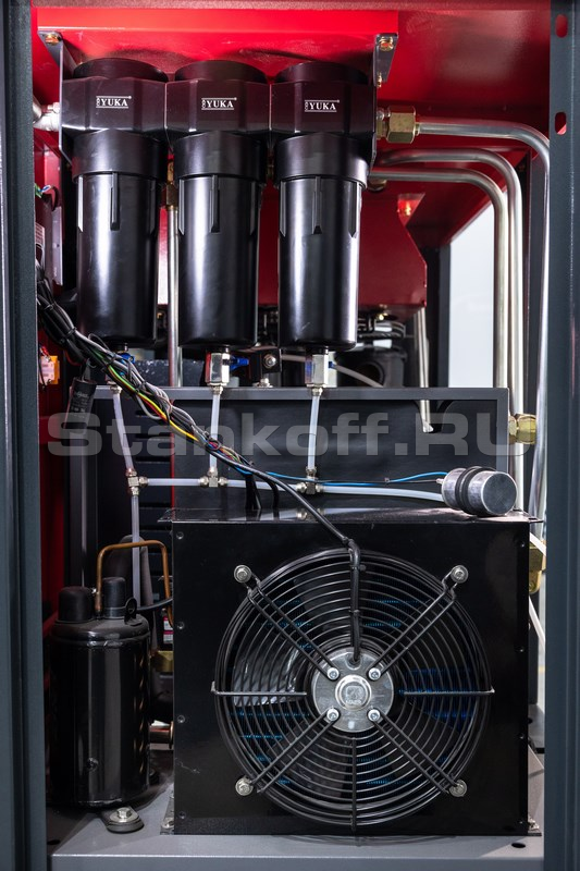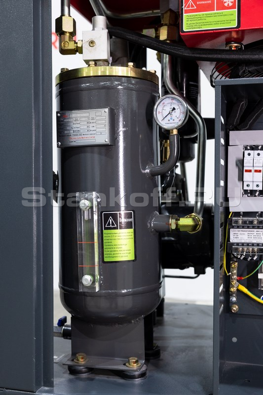 Расположена в вертикальном маслобаке. Снижает остаточное содержание масла в сжатом воздухе до 3 мг/м.3Смотровое окно уровня масла и удобный кран слива масла из маслобака (не требуется специальных приспособлений) обеспечивают удобство при регламентном техническом обслуживании.