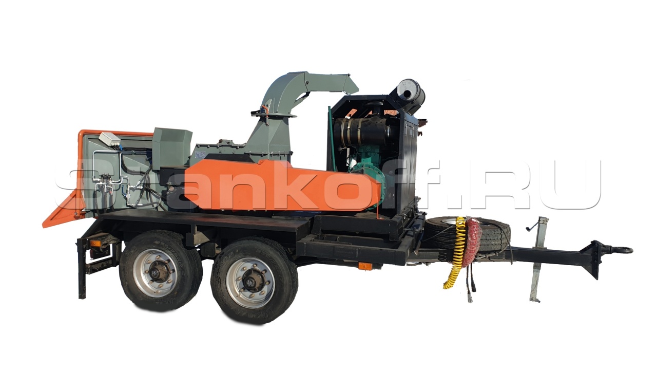 Мобильный измельчитель на шасси автомобильного прицепа, сертифицированн по стандартам ГОСТ Р ИСО 9001-2015 и имеющий одобрения типа транспортного средства. Он монтируются на шасси автомобильных прицепов категории О3, обеспечивает эффективную переработку материала при низком износе ножей благодаря медленному вращению барабана. С высокой скоростью вращения барабана (850 об/мин) и удобной системой загрузки, эти измельчитель обеспечивает эффективность и удобство в использовании.
