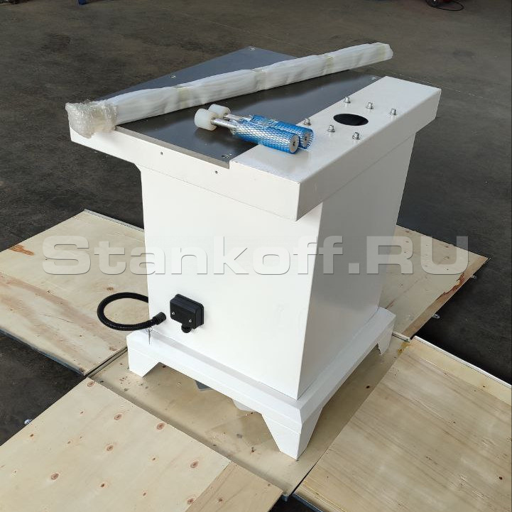 Эргономичный и простой в исполнении пульт управления располагается на передней панели станка. На пульте располагаются все основные функции, в т. ч. кнопка аварийной остановки станка.