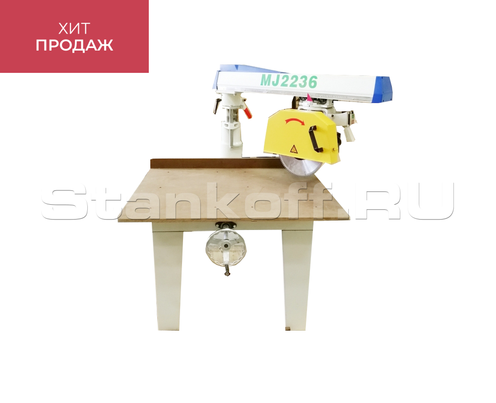 Пила с электродвигателем крепится на консоли, обеспечивающей перемещение пилы параллельно над плоскостью стола.