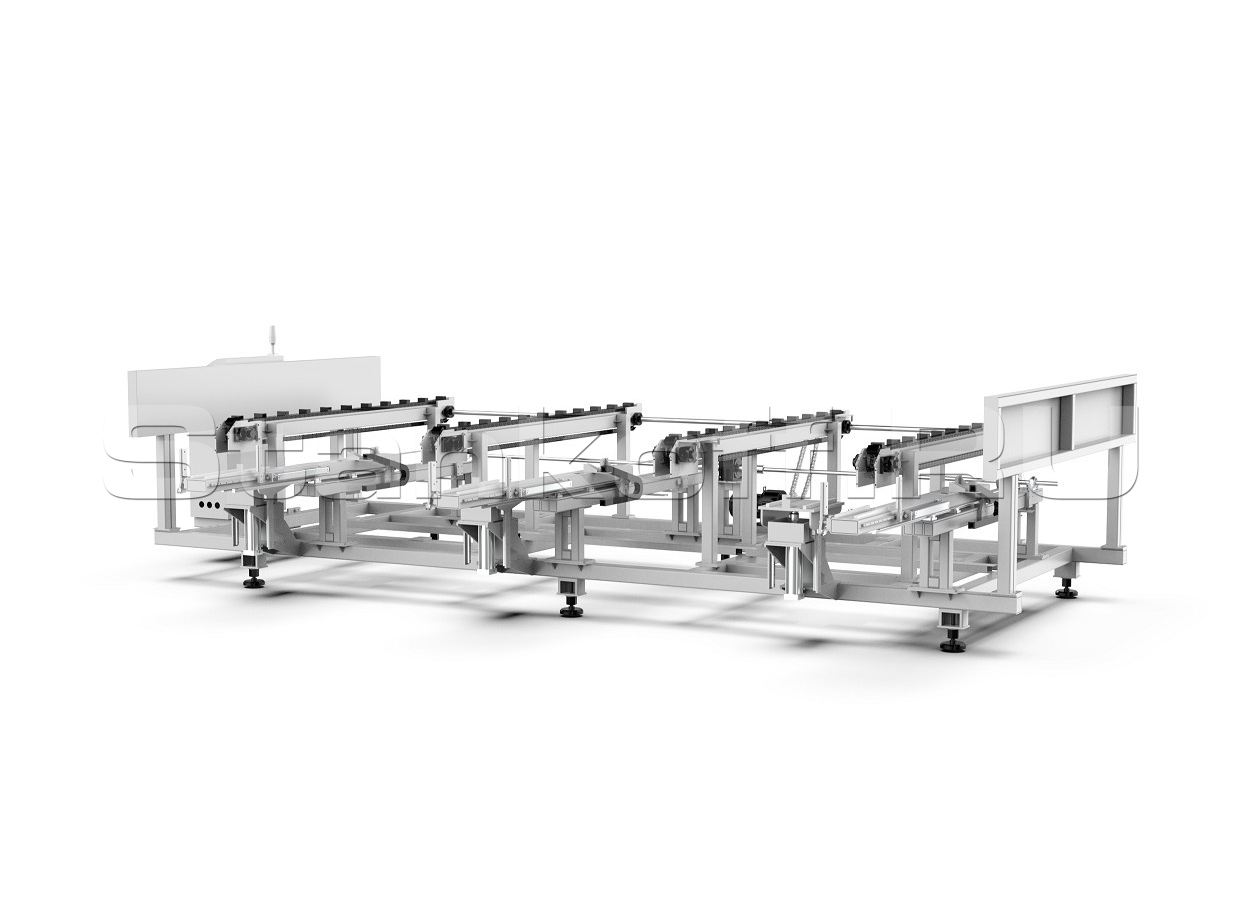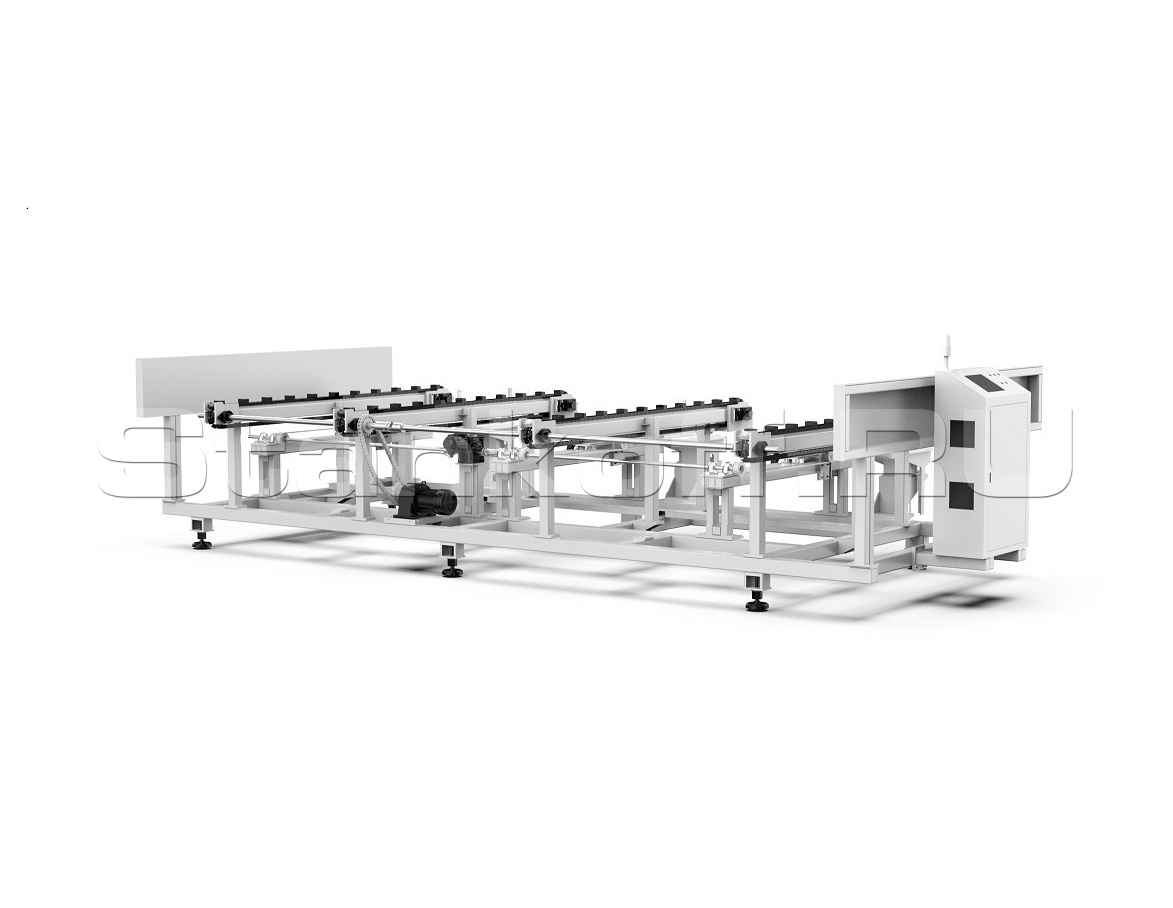 Предназначен для погрузки обрабатываемых труб в зону резки. Его управление осуществляется при помощи программно-логического контроллера (PLC). Максимальное количество загружаемых труб составляет 5 шт. Обладает возможностью загрузки круглых, квадратных и прямоугольных труб.
