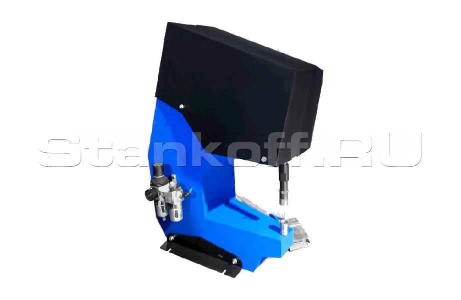Пневматический пресс предназначен для выполнения работ по запрессовке, установке крепежных элементов в детали из листового металла, пуклевки, обжима и других операций, требующих больших усилий. Станок имеет жесткую сборно-сварочную конструкцию и устанавливается на стол, верстаке, или отдельной подставке. В верхней части корпуса установлен механизм, создающий с помощью пневмопривода вертикальное усилие, которое через шток передается на рабочих инструмент. Механизм имеет регулировки, которые позволяют точно выставить направление движения штока.