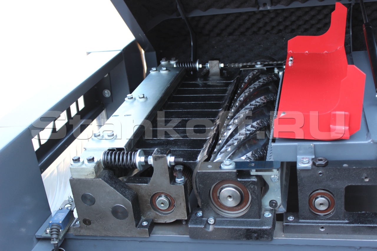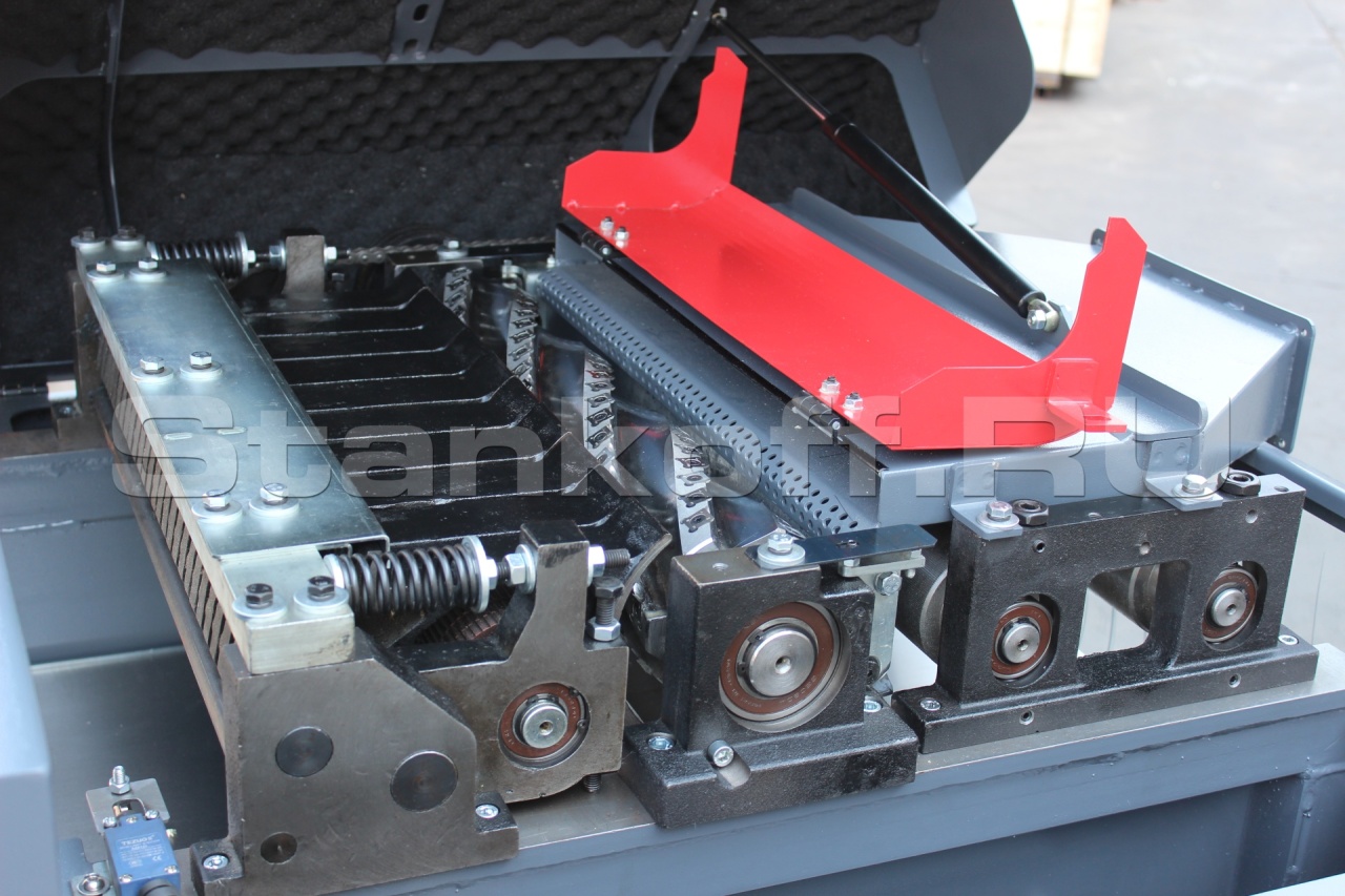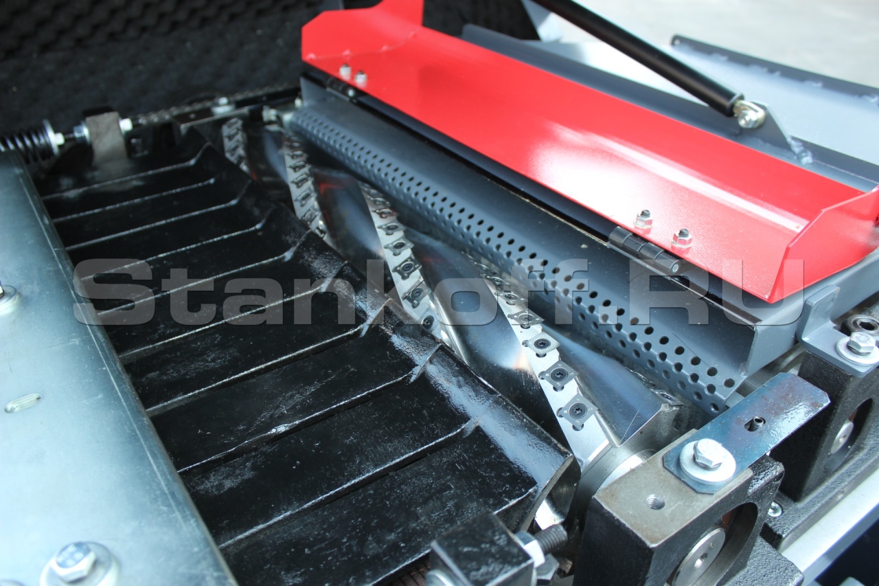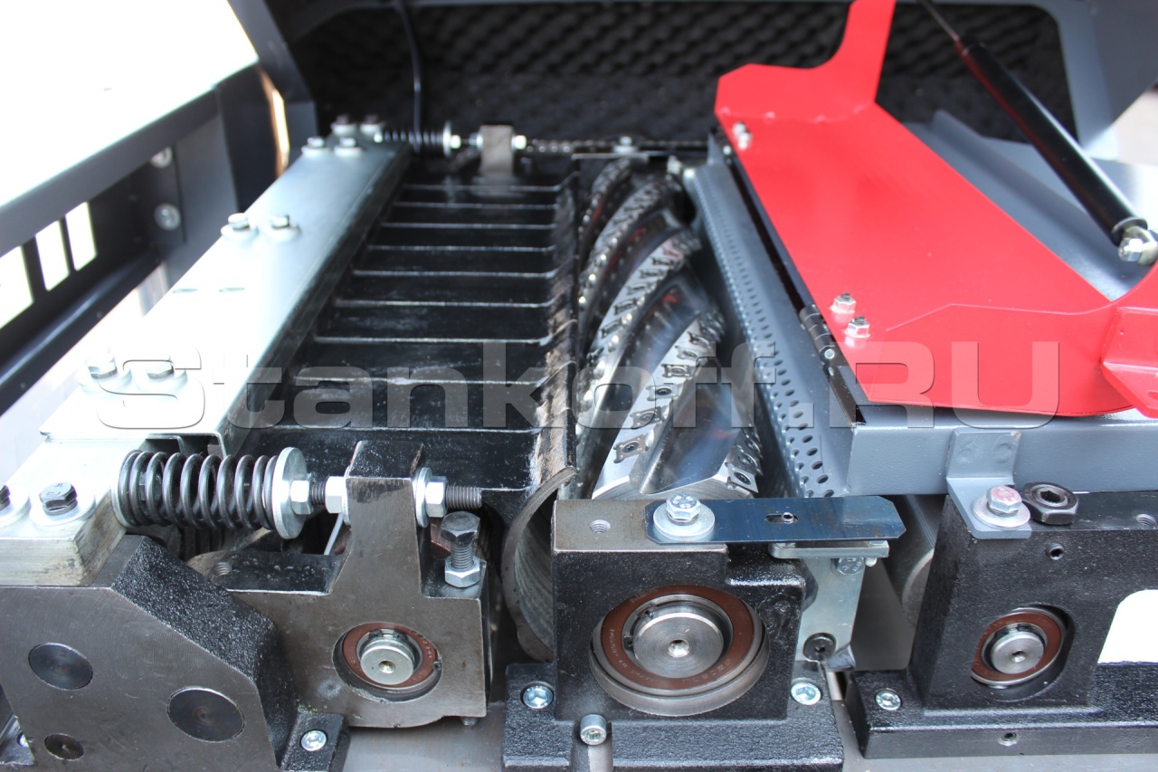 Рейсмусовый станок оснащен зубчатым роликом подачи с раздельной структурой, что позволяет регулировать толщину заготовки с высокой точностью.
