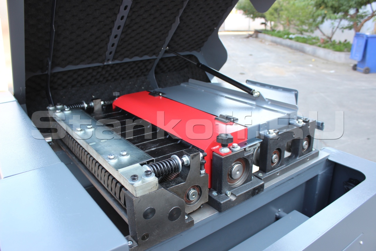 Рейсмусовый станок оснащен зубчатым роликом подачи с раздельной структурой, что позволяет регулировать толщину заготовки с высокой точностью.