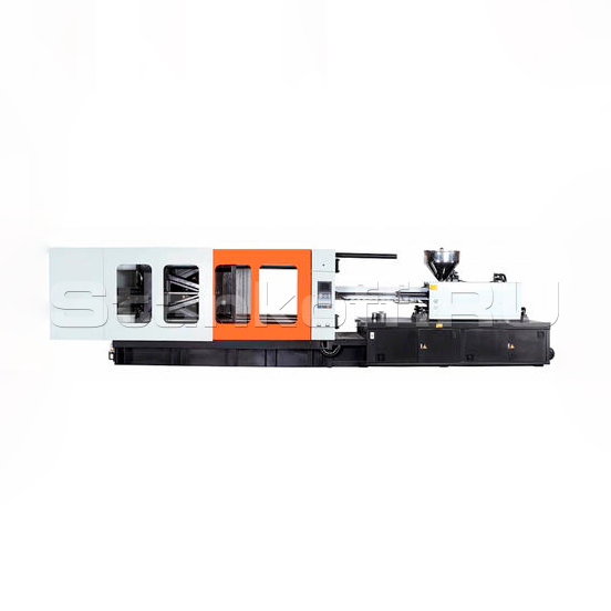 Универсальный термопластавтомат, работающий с большинством видов полимерного сырья, развивает усилие смыкания 6500 кН, усилие гидравлического толкателя 182 кН. Оснащен 13-ю выталкивателями, работает с пресс-формами толщиной от 350 до 910 мм, размер платформы 900х900 мм.