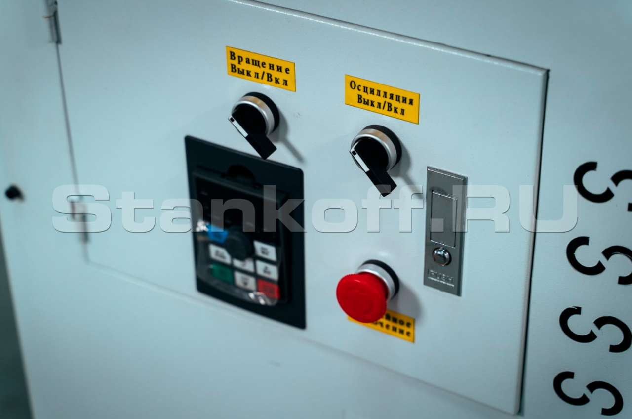 Пульт управления представляет собой контролер для регулировки частоты вращения и выключатель для включения/выключения двигателя мотора вращения шлифовального узла, включение механизма осциляции и кнопку аварийной остановки