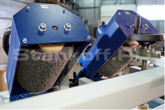 Станок представляет собой модульную конструкцию, что позволяет подобрать станок под конкретные задачи с необходимым количеством как верхних брашировальных голов, так и необходимым количеством боковых шлифовальных узлов.