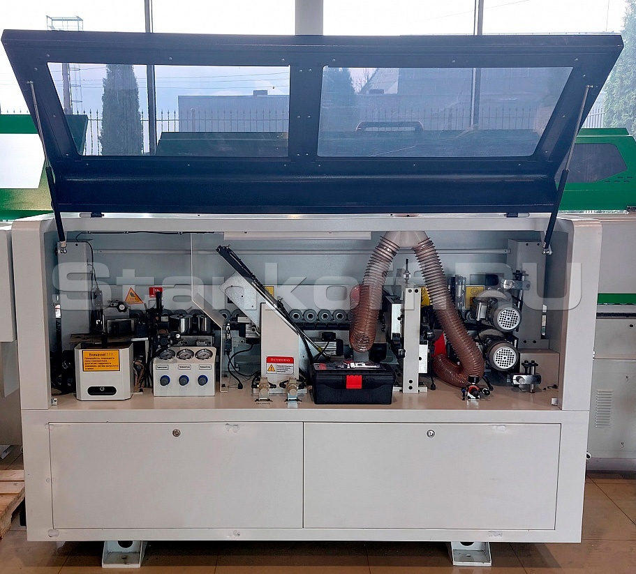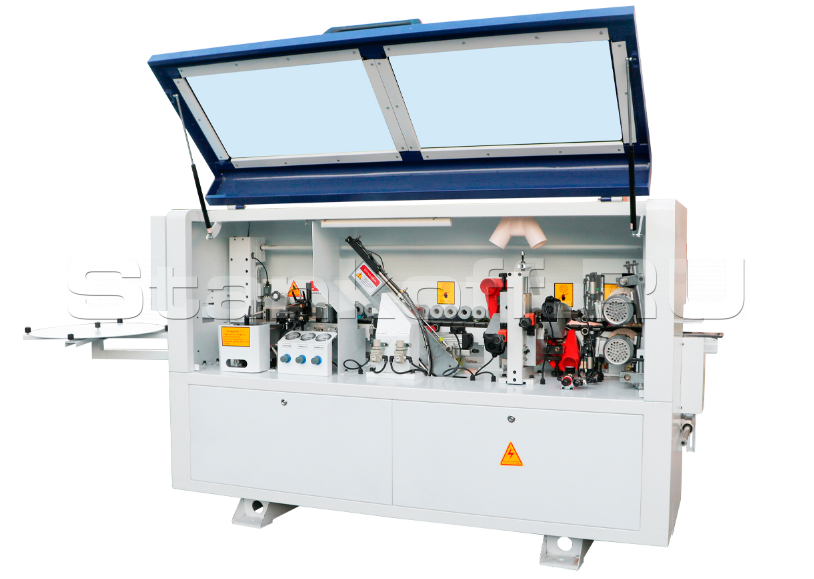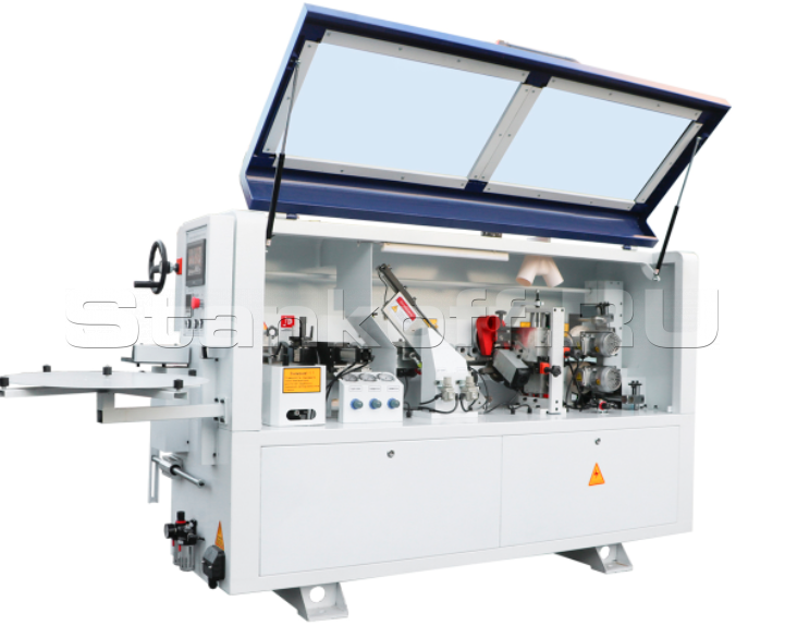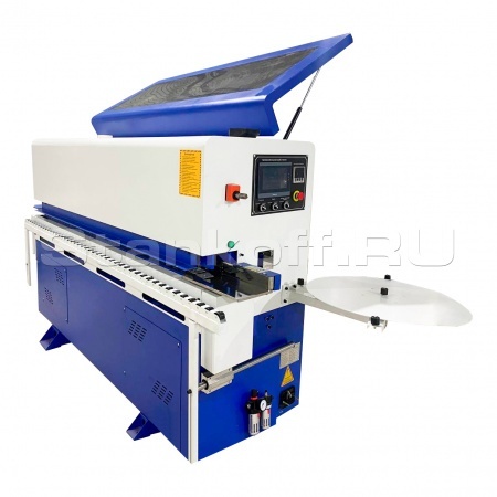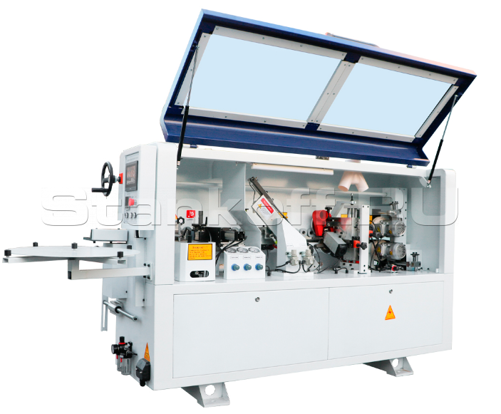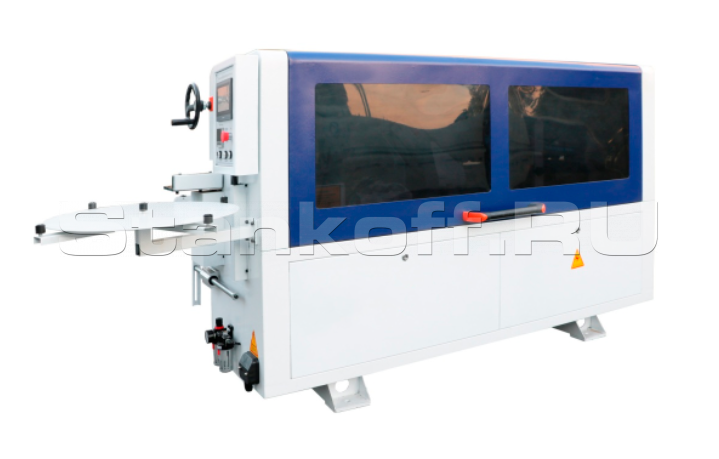 Предназначен для облицовывания прямолинейных кромок плитных материалов рулонными кромками АБС, ПВХ и полосовым кромочным материалом.