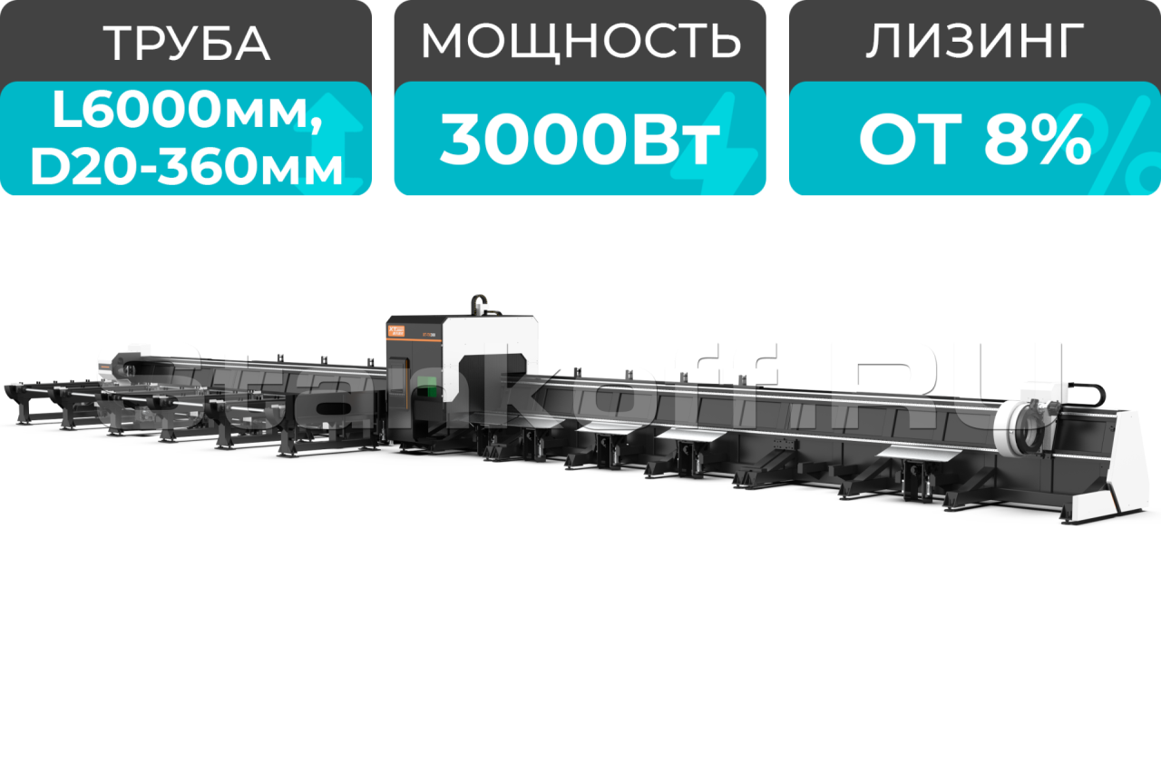 Современный станок для резки труб из нержавеющей, углеродистой, марганцевой стали, латуни, алюминия и т.д. Имеет возможность обрабатывать трубы различных форм: круглых, квадратных, а также L, H, I, U и C образных. Обрабатывает трубы диаметром от 20 мм до 360 мм и длиной до 6000 мм. Активная поддержка труб с серводвигателем осуществляет моментальную регулировку высоты в реальном времени, зависящую от текущей высоты поворота трубы