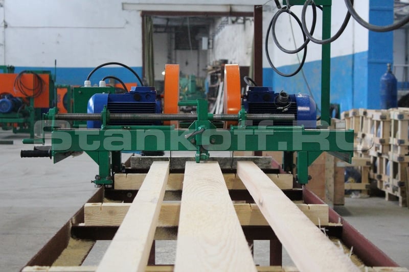 Кромкообрезной станок ПРД 2 предназначен для продольной распиловки досок на мебельную или паркетную заготовку, рейку, а также для получения обрезной доски из необрезной.