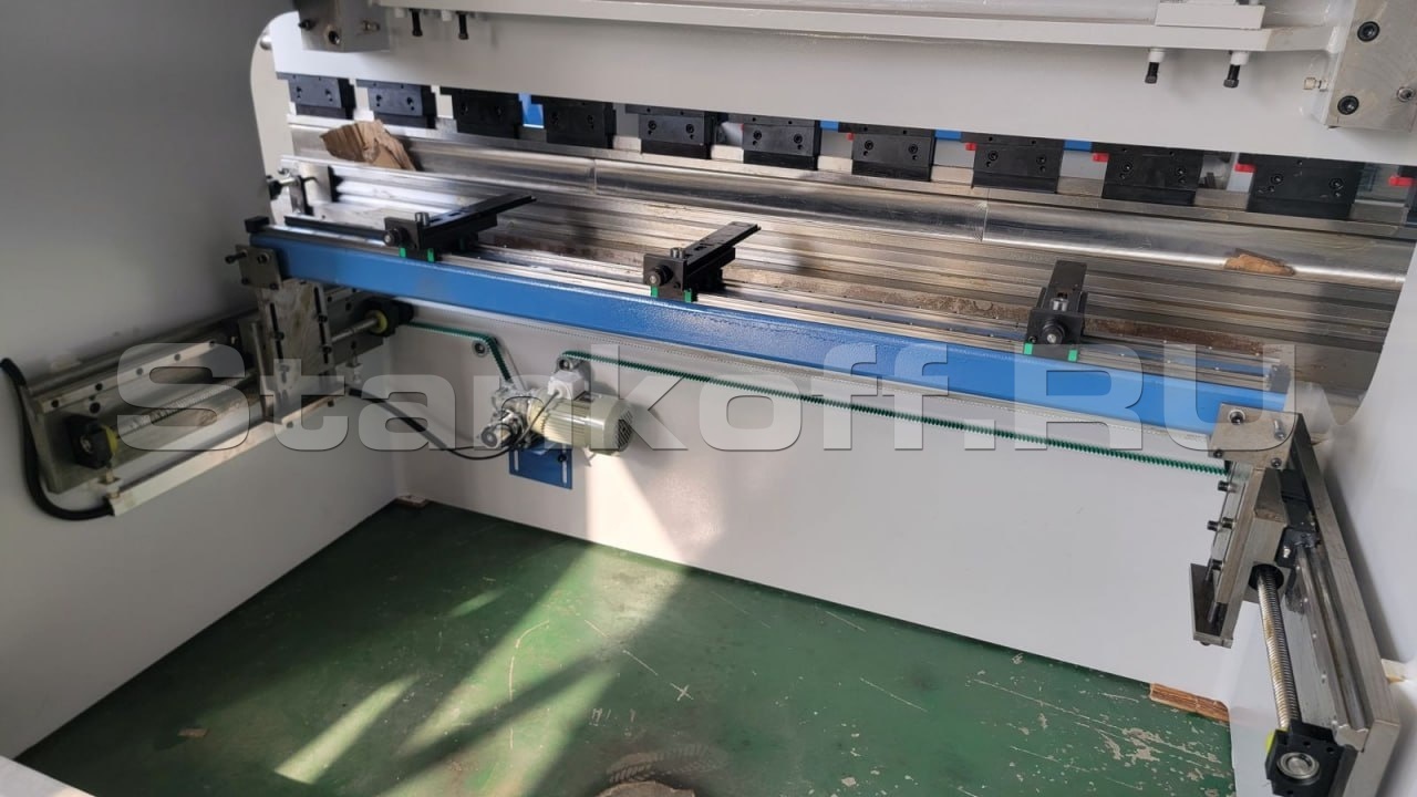 Автоматическая регулировка балки задних упоров по оси Х – относительно оператора вперед/назад. Блок задних упоров с приводом ШВП - HIWIN (Тайвань), благодаря чему достигается высочайшая точность позиционирования. Для удобства, станок оснащен 3 упорами, а не 2-умя как на большинстве аналогичных моделей конкурентов.