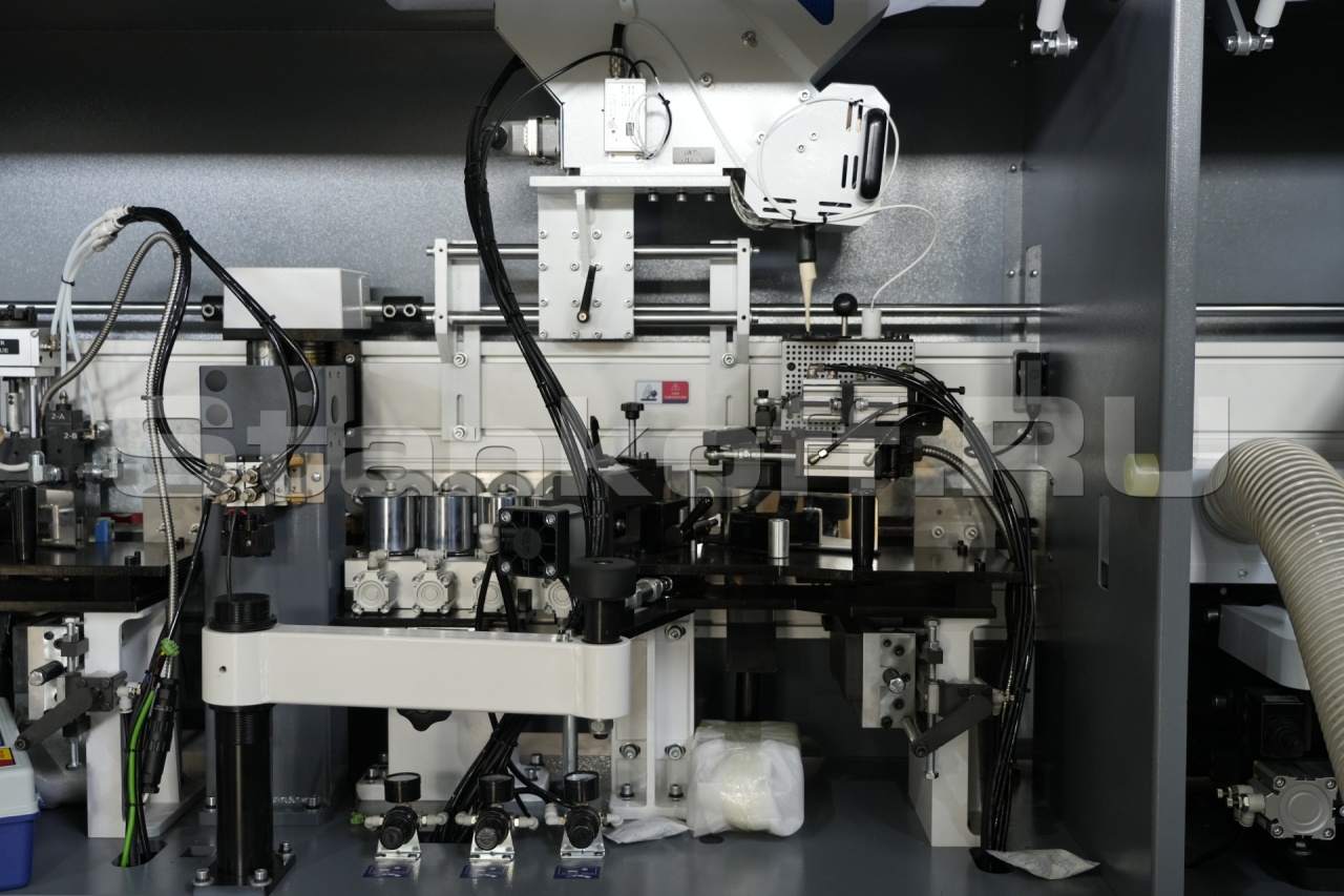 Промышленный клеевой узел и клеевая ванна большого объема. Точная регулировка наносимого клея, позволяет легко настроить станок под различные материалы, в том числе под ДСП различной плотности. Клеевой узел станка позволяет добиться качественного приклеивания, и настроить оптимальный клеевой шов, в зависимости от типа панелей.