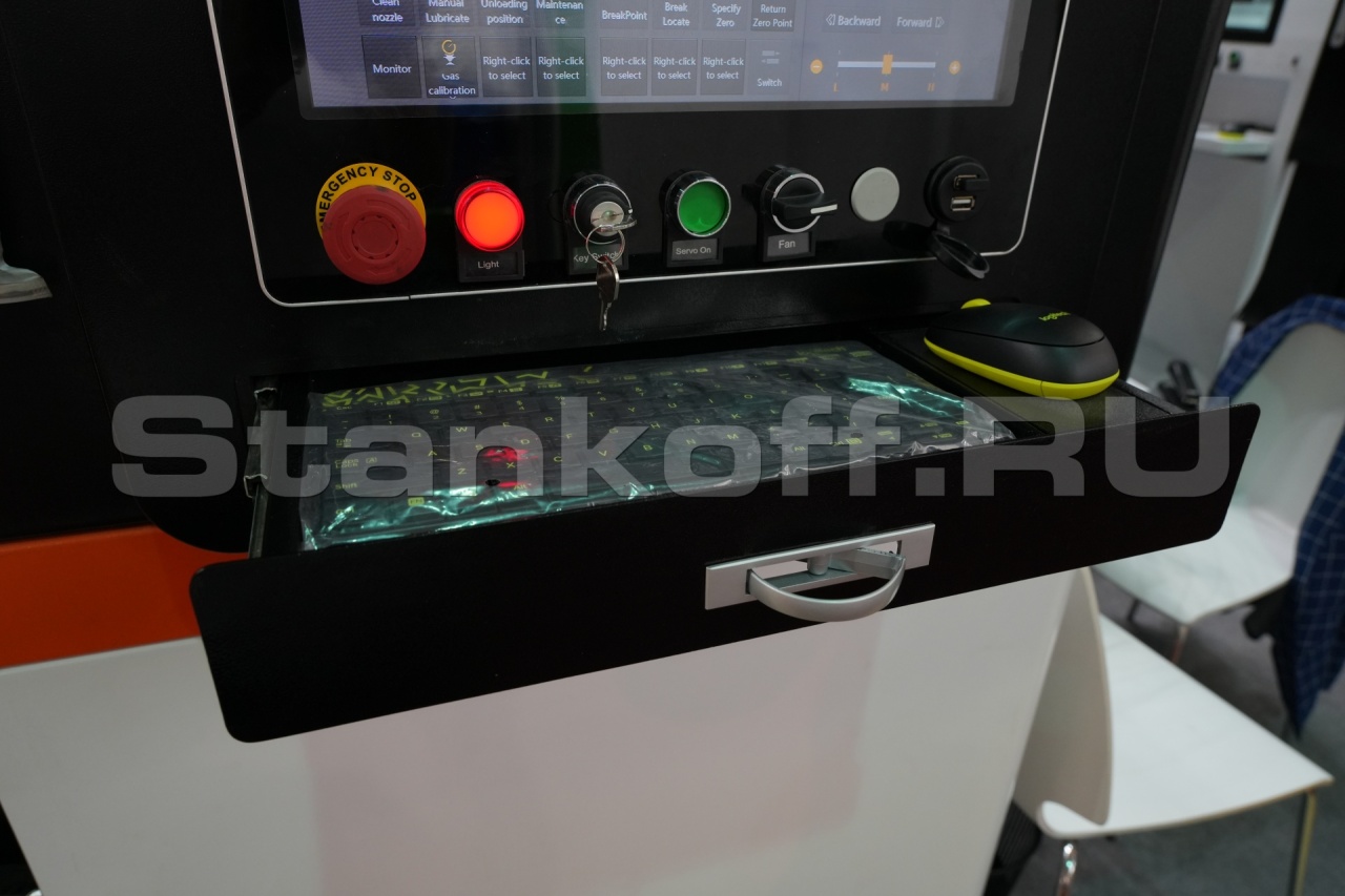 В кабине установлена камера с высоким разрешением, которую можно просматривать через внешний монитор и, таким образом, отслеживать процесс резки.