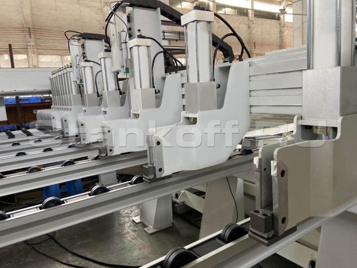 Пильная каретка приводится в движение и управляется серводвигателем мощностью 1,8 кВт и приводится в движение реечной шестерней. Максимальная скорость пиления может достигать 80 м/мин, а максимальная скорость возврата - 100 м/мин.