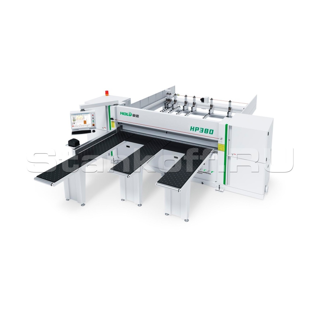 Пильный центр с ЧПУ HOLD HP-380 является передовым решением для пакетного раскроя плитных материалов, таких как МДФ, ДСП, ЛДСП, и прочих. Этот станок, предназначенный для крупносерийного производства, оснащен системой предварительного подреза нижней кромки, что позволяет минимизировать сколы и повысить качество конечной продукции.