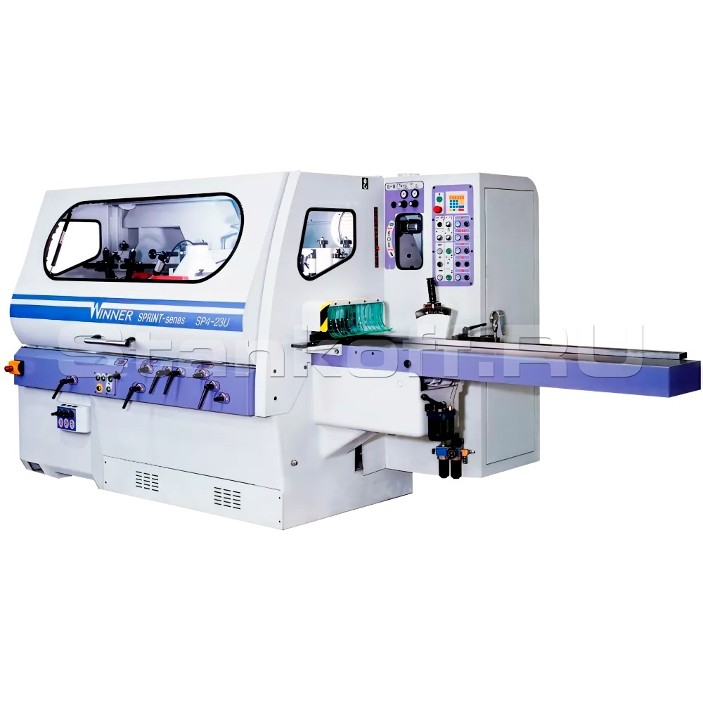 Четырехсторонний станок WINNER SP 4-23 предназначен для профильной обработки пиломатериала с четырех сторон с целью получения погонажных изделий (половой доски, вагонки, наличников, брусков, плинтуса и прочих фасонных изделий).