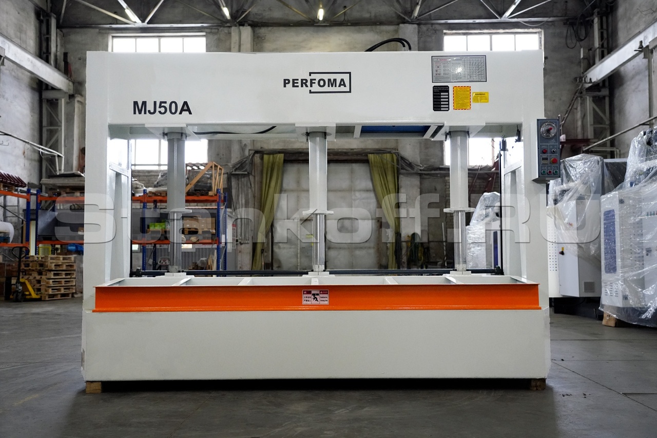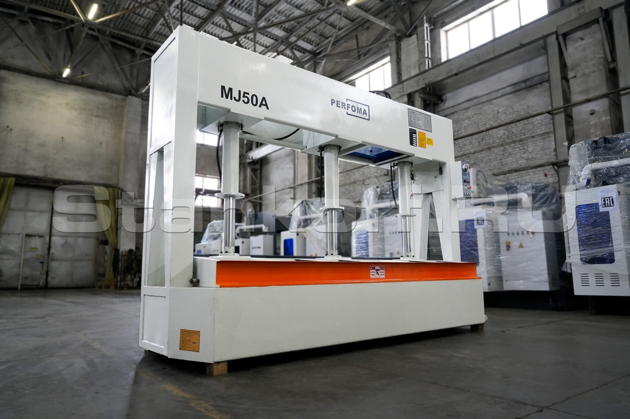 Деревообрабатывающий гидравлический холодный пресс MJ50 подходит для производства дверей и панелей. С его помощью можно ламинировать декоративный материал на мебельный щит, строительную перегородку, деревянную дверь и т. д., а также на искусственные плиты, такие как МДФ и фанера. Большинство электрических компонентов произведено Schneider.