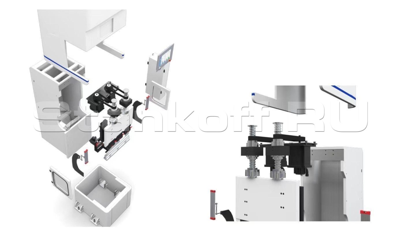 - Идеально подходит для цехов с ограниченным пространством, так как не требует места для установки крупногабаритных машин;