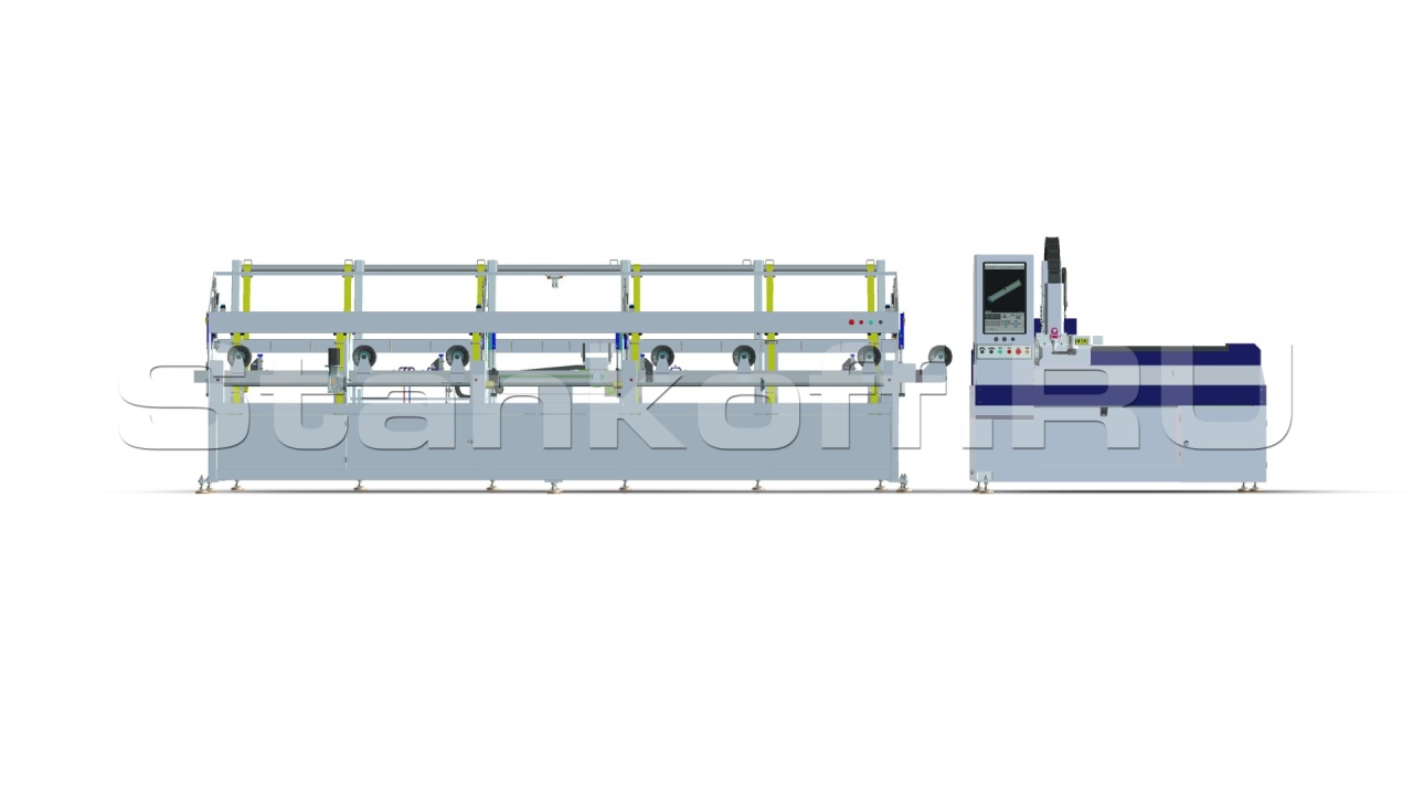 Предназначена для погрузки обрабатываемых заготовок в зону резки. Максимальный вес загружаемых труб в систему погрузки составляет 1500 кг, при этом максимальный вес одной трубы не более 40кг. Обладает возможностью загрузки круглых, квадратных и прямоугольных труб.Скорость подачи новой трубы - 2 сек.