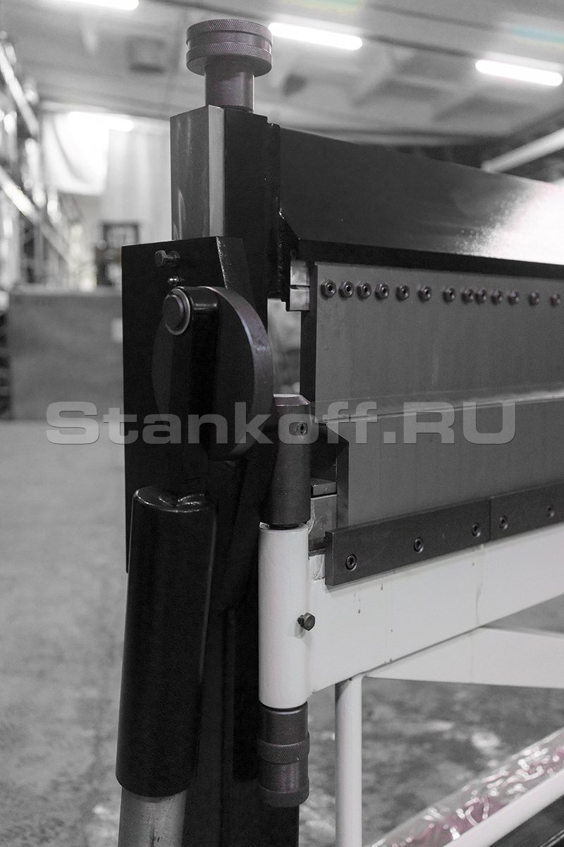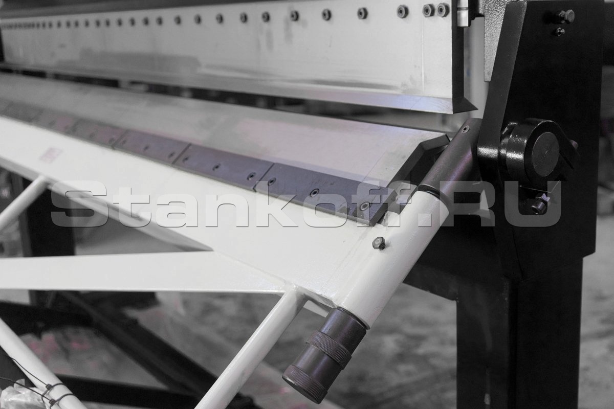 - Вертикальный ход прижимной балки, что обеспечивает более точное и равномерное прижатие по всей длине заготовки по сравнению с обычными осевыми прижимами. Гибочная балка дополнительно оснащена пружинной системой, снижающей усилия оператора.