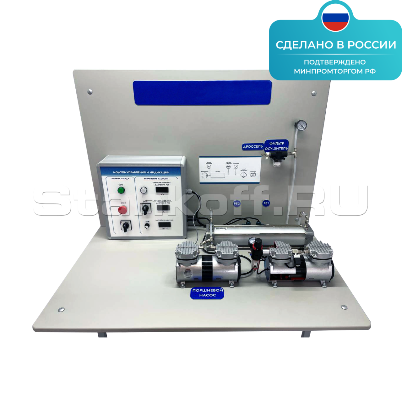 Макет-тренажер «Рабочие процессы поршневого вакуумного насоса» ST0301 предназначен для проведения лабораторных работ по изучению устройства, принципа работы, определению характеристик поршневого вакуумного насоса.