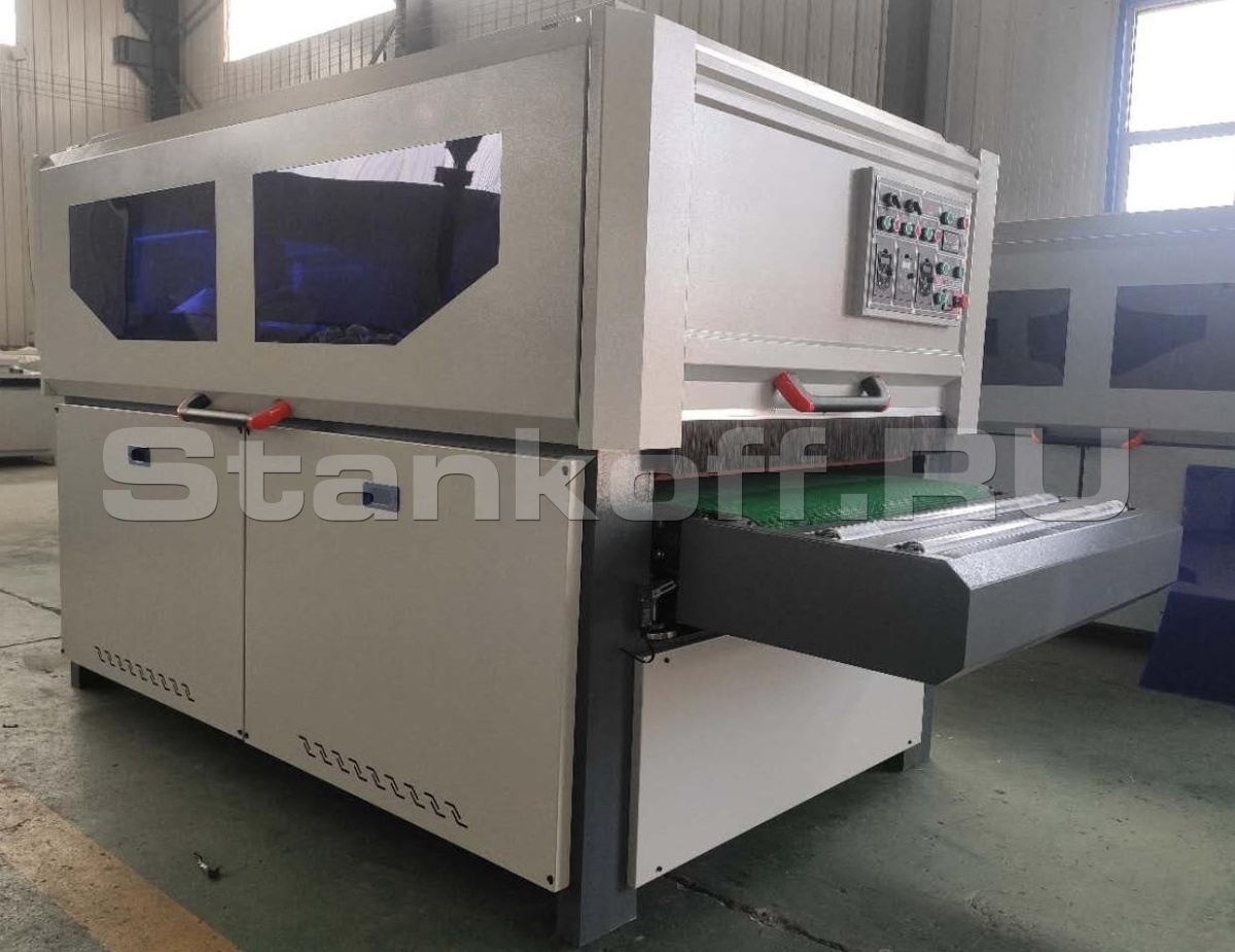 Сдвоенные узлы поперечного шлифования, узел барабанов и узел чашек имеют систему попеременного перемещения каждого из узлов, относительно заготовки, что позволяет обработать максимальную площадь заготовки.| Макс. ширина обработки, мм | 1000 |