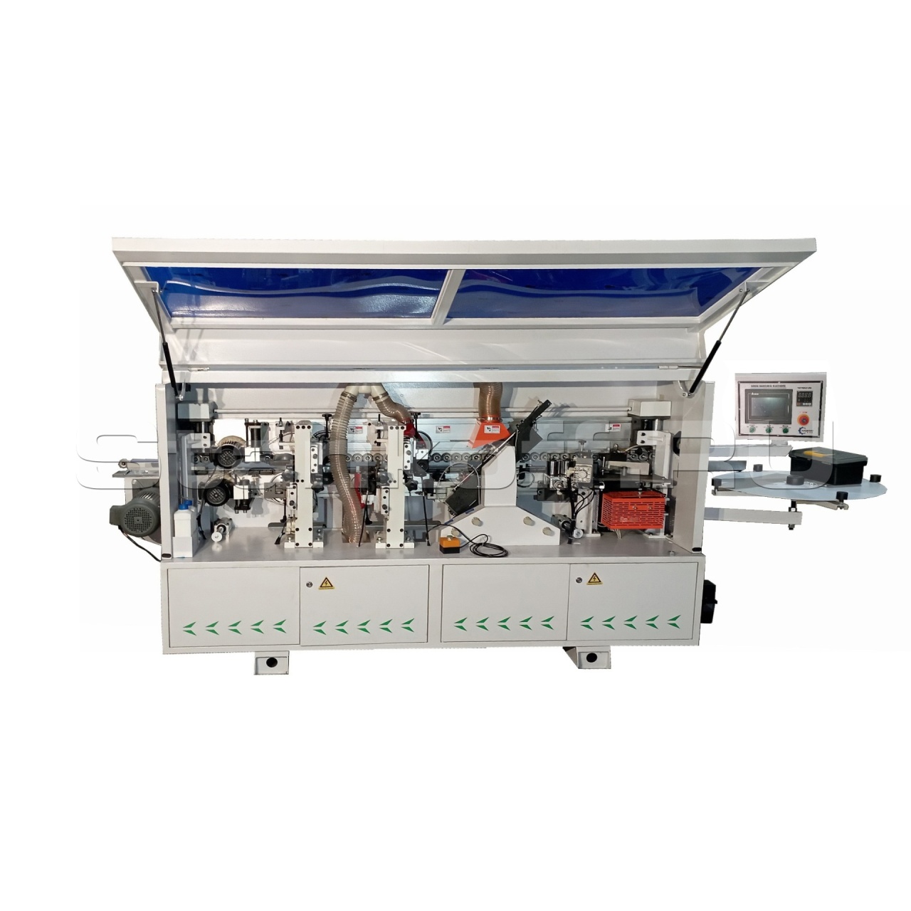 Предназначен для облицовывания прямолинейных кромок плитных материалов рулонными кромками АБС, ПВХ и полосовым кромочным материалом толщиной до 3мм.