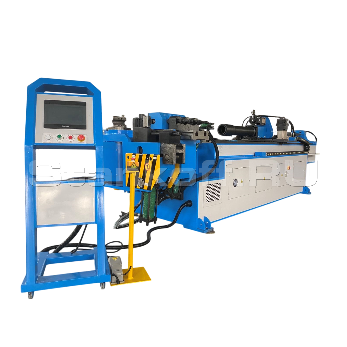 - 3 управляемые ЧПУ координаты: 1) угол гиба – гидравлический привод; 2) продольное перемещение трубы – привод от электрического сервомотора через редуктор; 3) поворот трубы в пространстве – привод от электрического сервомотора через редуктор;