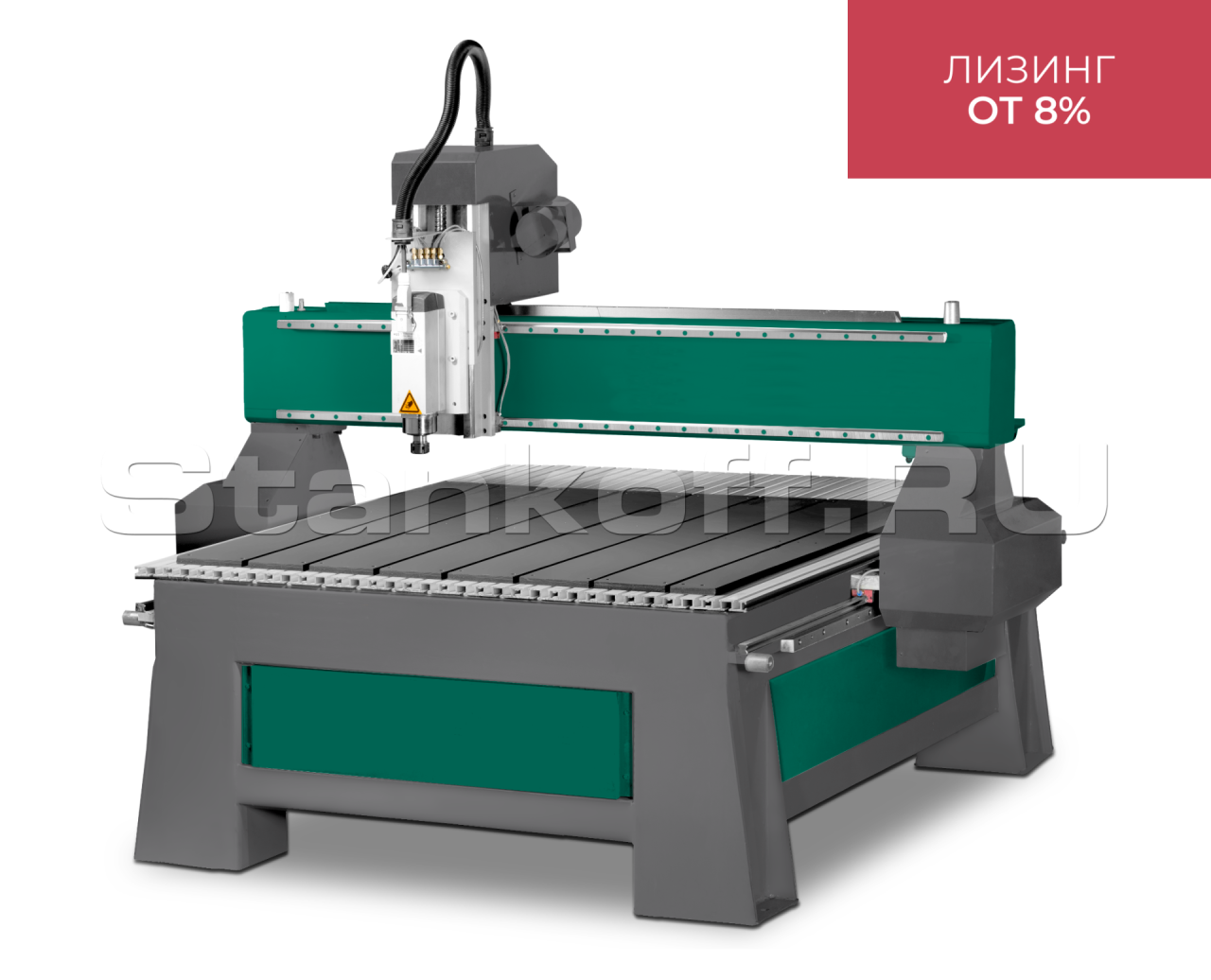 Позволяет быстро и неподвижно установить заготовку на рабочий стол за счет мощной вакуумной станций 5,5 кВт. (опция) . Это позволяет экономить время на установку. Также заготовку на стол можно крепить механически при помощи струбцин.