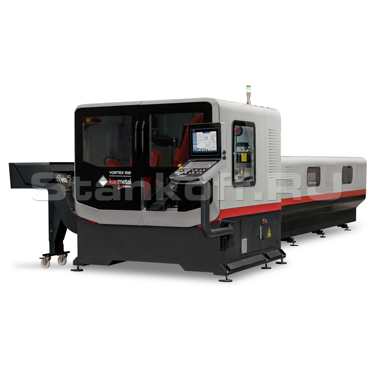 Данный станок имеет возможность настраивать все параметры резания в зависимости от типа материала, состояния термообработки, размера материала, типа лезвия и количества зубьев. Таким образом, все параметры станка автоматически регулируются в соответствии с разрезаемым материалом. Возможность точной резки обеспечивается линейными направляющими. Кроме того, корпус, выполнен из специального литья, что позволяет снизить вибрацию и обеспечить безупречную резку. Его главный двигатель с высоким крутящим моментом предотвращает потерю крутящего момента при низкой или высокой частоте. VORTEX предоставляет своим пользователям беспрецедентную скорость.