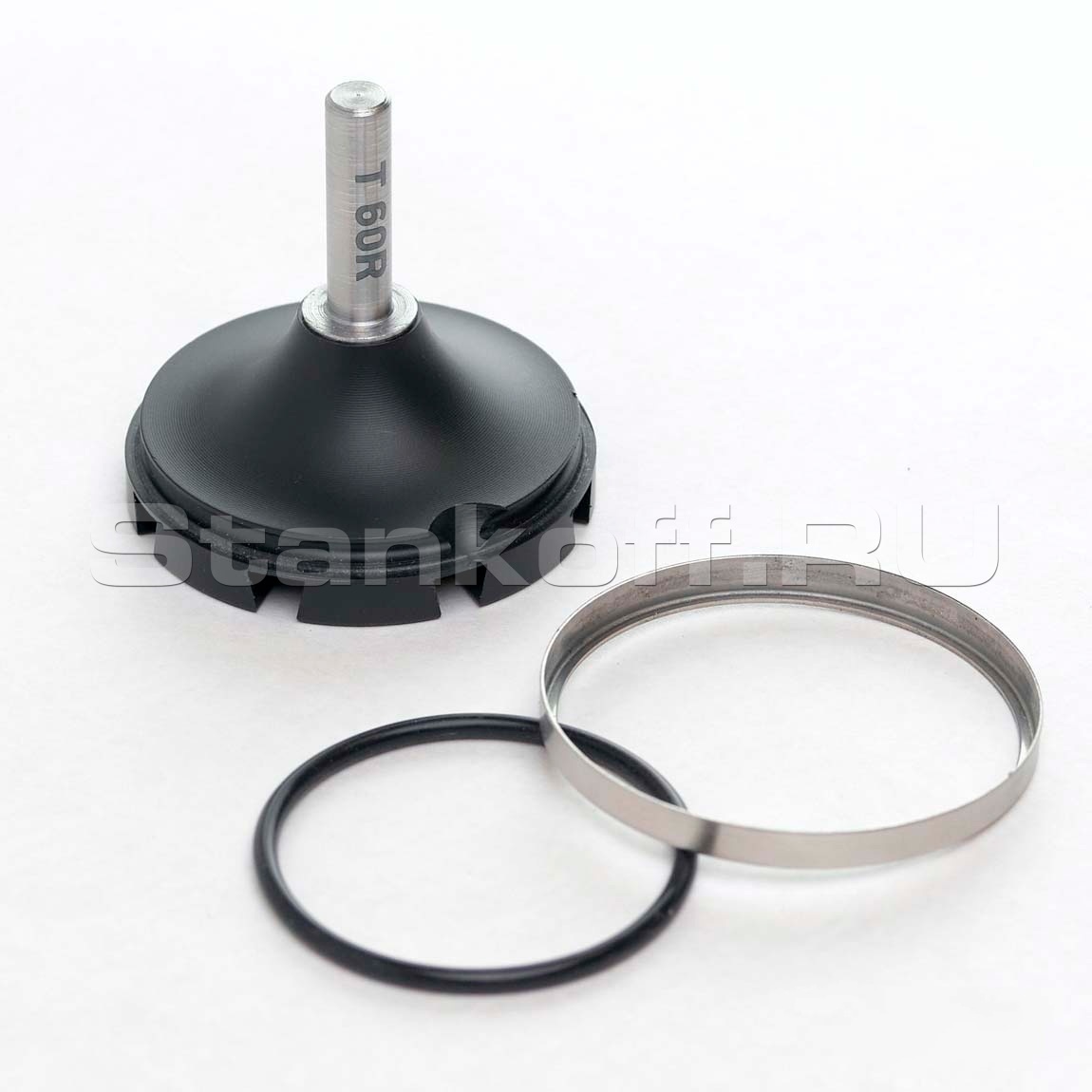 Популярная насадка среди мастеров, которые занимаются изготовлением менажниц, винных столиков, подносов, разделочных досок, сувелей, капов, деревянных панно, изделий с мелкой резьбой. T60R – торцевая насадка, в которой расположены пазы для щеточно-шлифовальных сегментов. Сквозные пазы предназначены для широких щеток, закрытые – для узких. После сборки установите стопорное металлическое кольцо и затем стопорное резиновое кольцо. Совместимый инструмент: дрель, шуруповерт, сверлильный станок. Рекомендуемые обороты: сложные фрезеровки – до 600 об/мин., плоскости – до 1200 об/мин.
