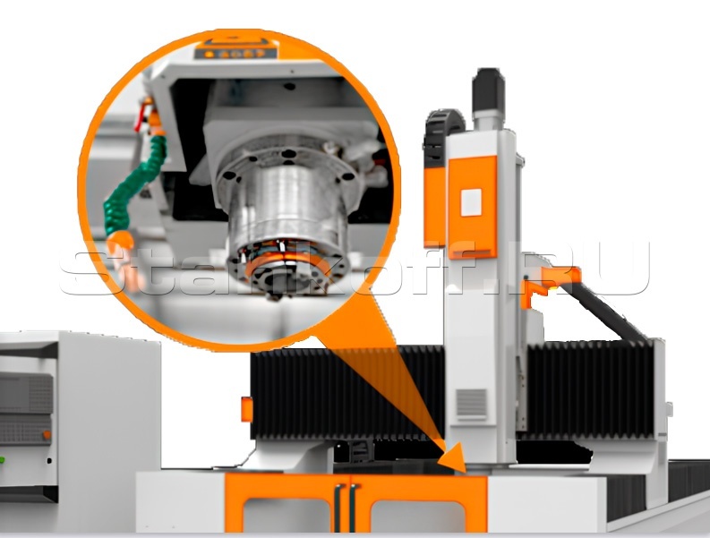4 сервопривода HNC/Yaskawa с абсолютным энкодером обеспечивают более высокую точность (до 0,01 мм) и скорость перемещений по осям по сравнению с шаговыми двигателями, что позволяет выполнять обработку материала быстро и точно.