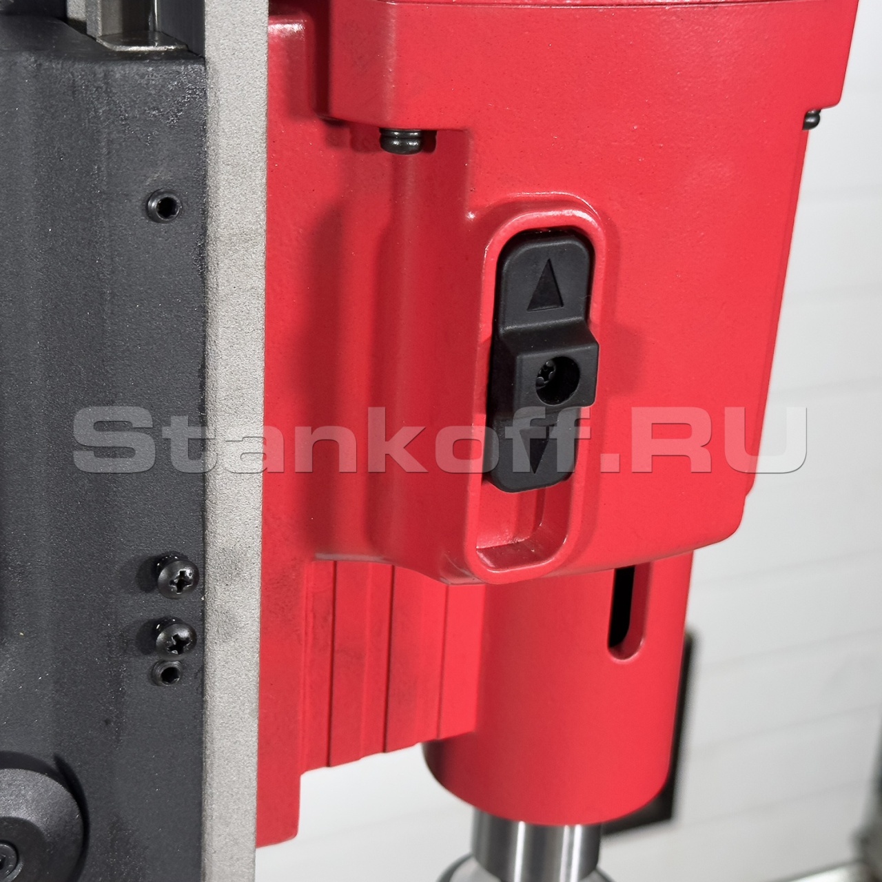 Переносной магнитный сверлильный станок MCM-100R предназначен для промышленного сверления отверстий в стали диаметром до Ø100 мм корончатым сверлом и до Ø31,75 мм спиральным. Оснащён реверсом и позволяет нарезать резьбы до М36. Мощный двигатель 2000 Вт и поворотное магнитное основание с силой удержания 18 000 Н обеспечивают надёжную фиксацию даже на сложных поверхностях. Станок предлагает 4 ступени скорости с плавной регулировкой оборотов от 45 до 700 об/мин, а смещение станины ±20 мм облегчает точное позиционирование. Встроенная подача СОЖ предотвращает перегрев инструмента, а страховочный ремень обеспечивает безопасность при работе. Идеален для строительных площадок, металлообработки и ремонтных цехов.