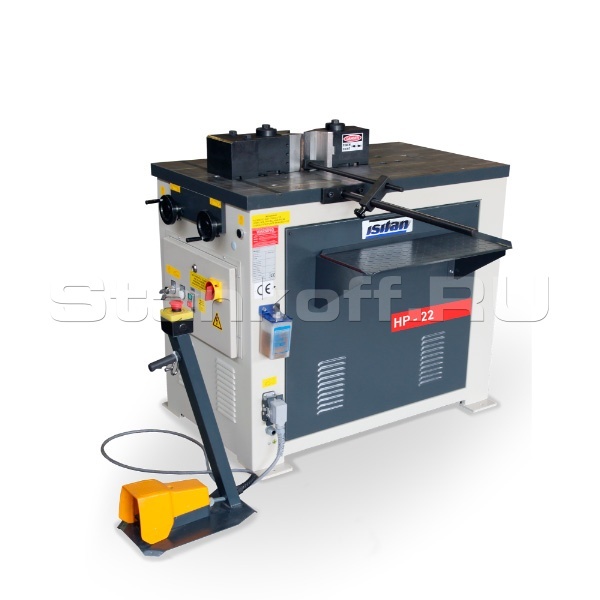 Горизонтальный гидравлический листогибочный пресс с усилием 22 тонн ISITAN HP-22 предназначен для гибки полосовых и профильных металлических заготовок холодным способом с помощью специальных штампов.