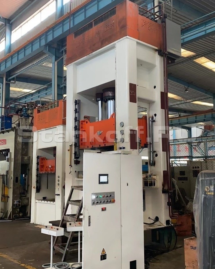 - Сварная станина пресса обеспечивает высокую жёсткость и параллельность столов. Ползун перемещается по 4 регулируемым направляющим с 8 направляющими поверхностями в углах. Интегрированная система смазки обеспечивает плавное скольжение. Привод — гидроцилиндр в верхней части пресса. В качестве опции доступен гидравлический выталкиватель ползуна;