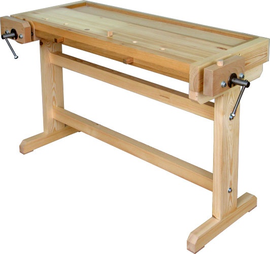 - Выполнены из натурального дерева, оборудованы передними и боковыми тисками с металлическими винтами, подвижными клиньями для обработки длинных заготовок и лотком для заготовок и инструмента.
