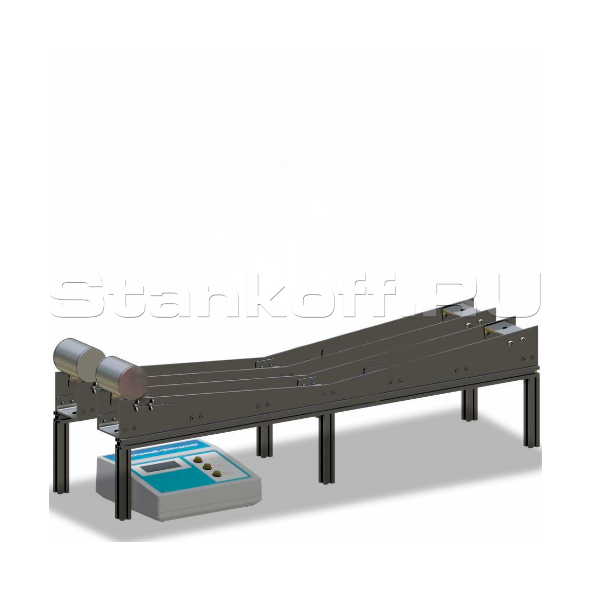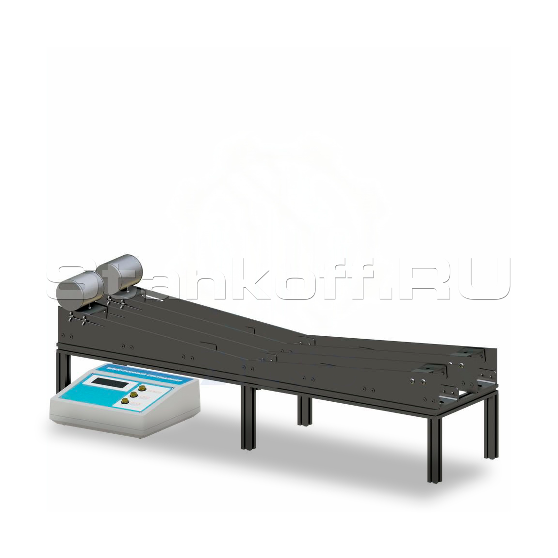 Установка предназначена для демонстрации влияния значений моментов инерции тел с одинаковой массой и габаритами на характер их движения.