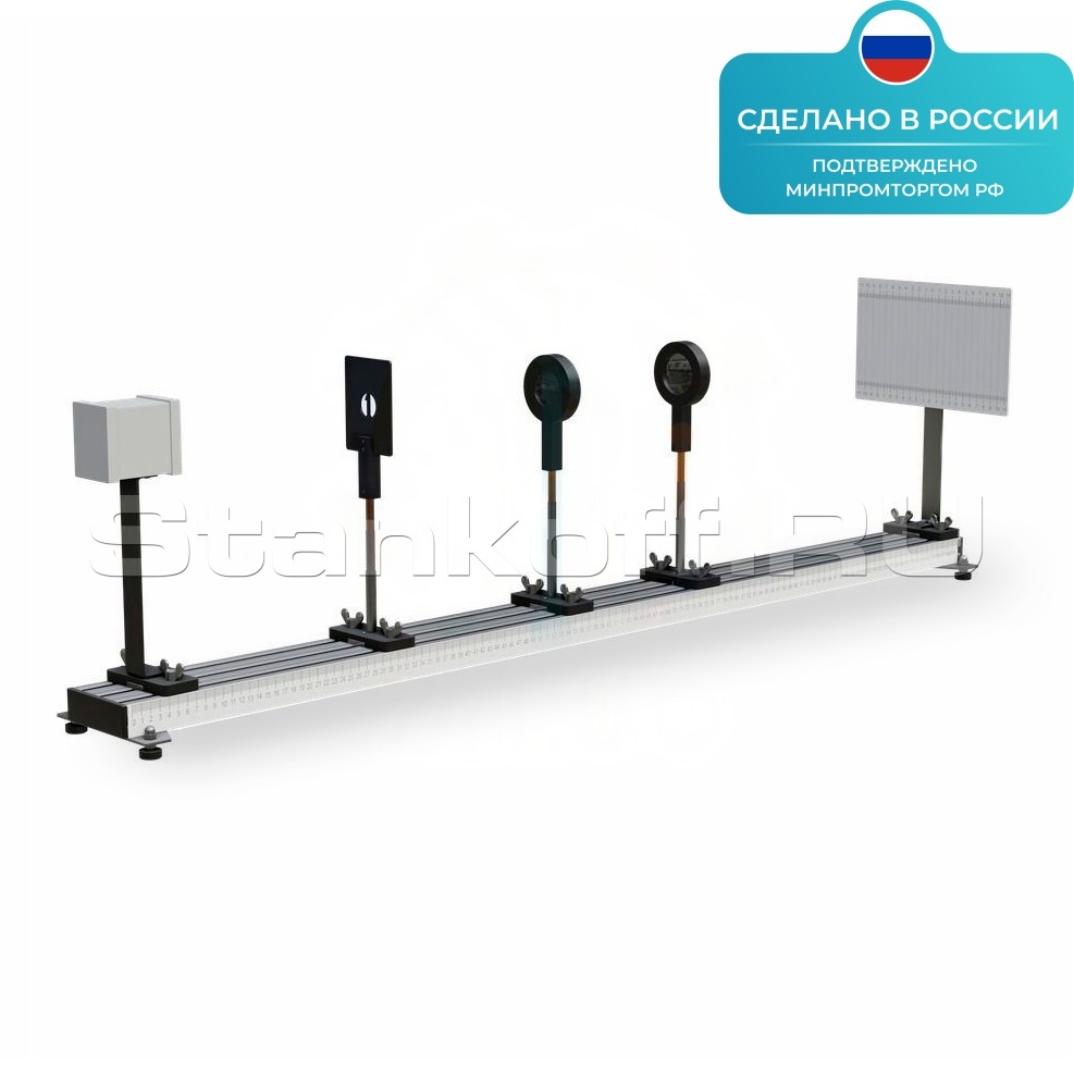 Лабораторная установка предназначена для проведения опытов по определению фокусного расстояния тонкой собирающей и тонкой рассеивающей линз. С её помощью студенты могут на практике изучить основные оптические свойства линз и освоить методы измерения фокусного расстояния, используя различные экспериментальные подходы. Установка позволяет проводить как прямые, так и косвенные измерения параметров линз, что способствует более глубокому пониманию законов геометрической оптики.