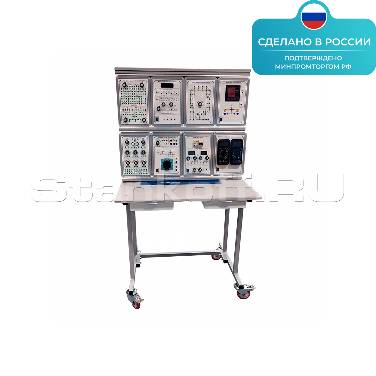 Лабораторная установка предназначена для проведения лабораторно-практических занятий по курсу «Теория электрических цепей» и обеспечивает изучение измерительных приборов и измерений в электрических цепях, изучение электрических цепей постоянного и переменного тока, трехфазных цепей, переходных процессов в линейных и нелинейных электрических цепях, электрических цепей с последовательным и параллельным соединением элементов.
