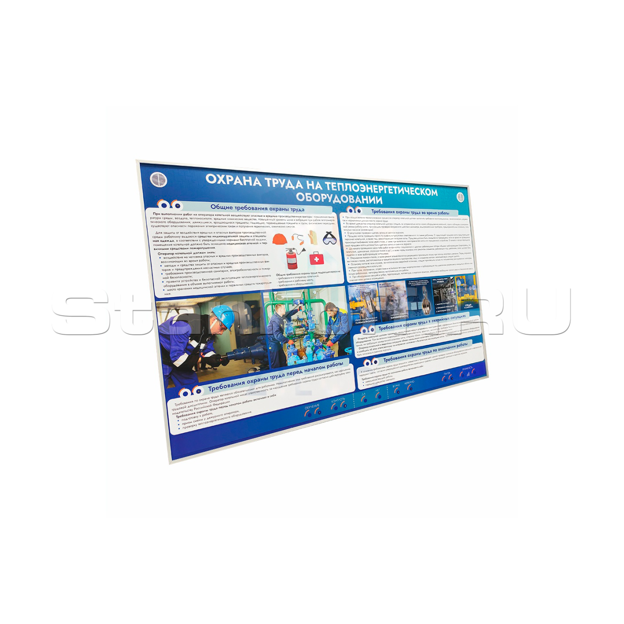 Стенд предназначен для проведения обучения и инструктажа по охране труда и технике безопасности лиц, занятых в эксплуатации тепломеханического оборудования котельных.