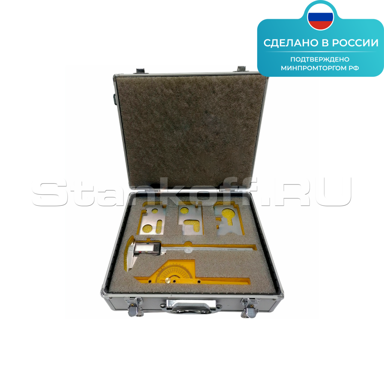 Комплекс состоит из кейса с комплектом. В комплект входят: плоские детали со ступенчатыми переходами, набор измерительных инструментов и комплект чертежей элементов устройства.