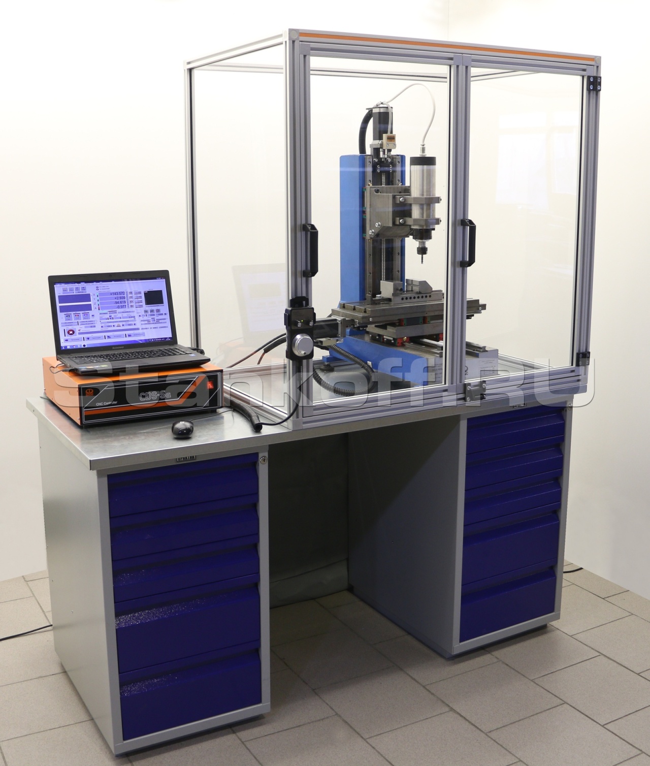 Фрезерный станок с ЧПУ RDS-F, оснащённый защитным экраном из оргстекла, предназначен для практического освоения учащимися всех этапов подготовки производства. Он позволяет изучать технологические режимы фрезерной обработки, выполнять изготовление деталей из типовых конструкционных материалов, а также знакомиться с основами работы наладчиков станков с ЧПУ.