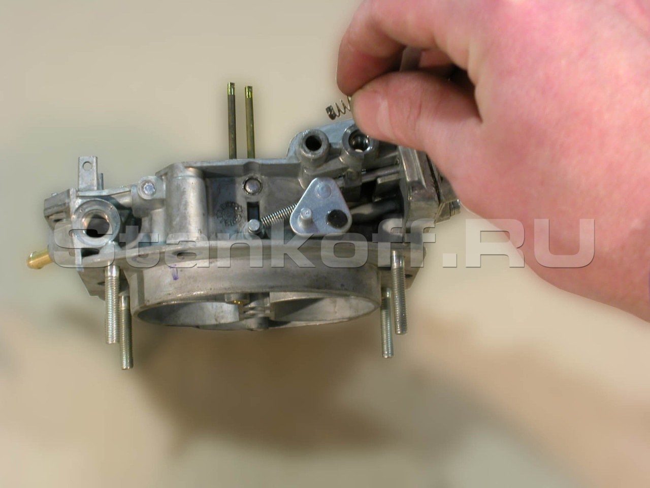 Стенд знакомит с устройством и прививает навыки по ремонту и регулировке карбюратора легкового автомобиля.